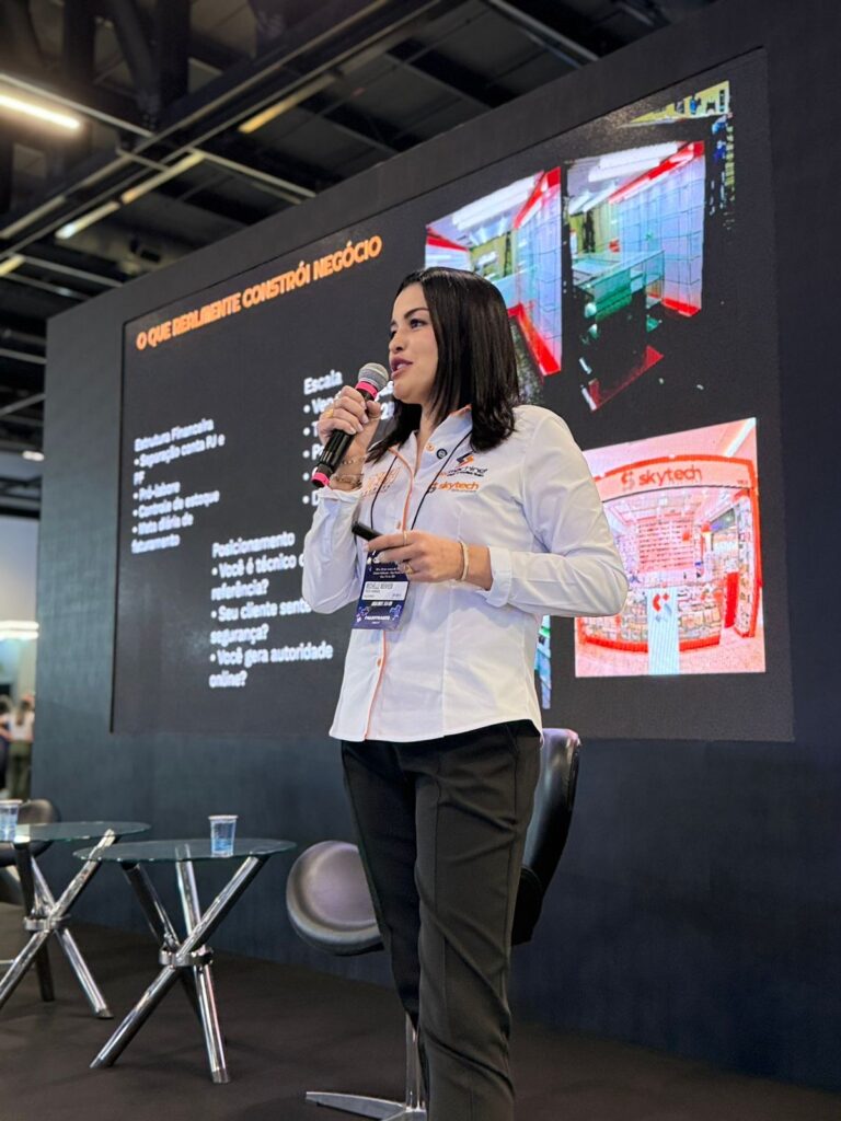 Além da forte presença com suas marcas, Michelle também subiu ao palco do evento, onde compartilhou sua visão sobre o mercado e destacou a importância da profissionalização das assistências técnicas no Brasil. Em sua fala, a empresária reforçou a necessidade de transformar conhecimento técnico em negócios estruturados, sustentáveis e lucrativos, além de incentivar o empreendedorismo dentro do segmento.