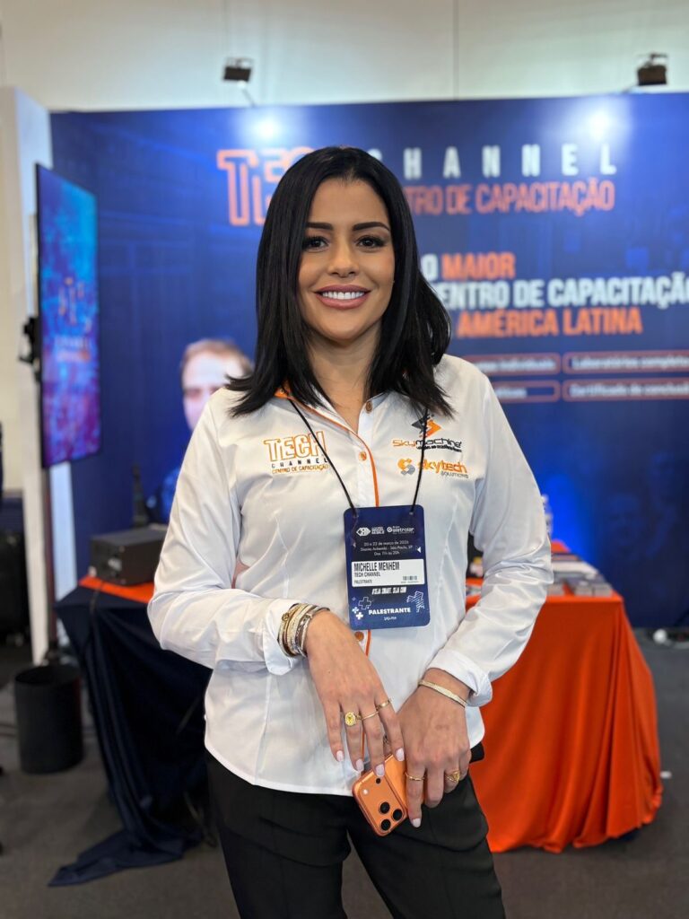 Reconhecida como uma das principais referências do mercado mobile no Brasil, Michelle marcou presença com um stand robusto reunindo suas empresas Skytech, Skymachine, Tech Channel e a novidade Skyline, apresentando ao público um verdadeiro ecossistema completo que vai desde a distribuição de peças até maquinários profissionais e capacitação de técnicos.